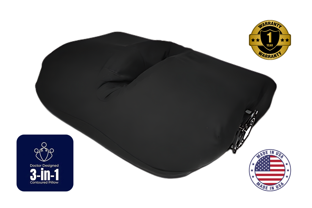 3-in-1 contoured shape works for stomach, back, and side sleeping positions.